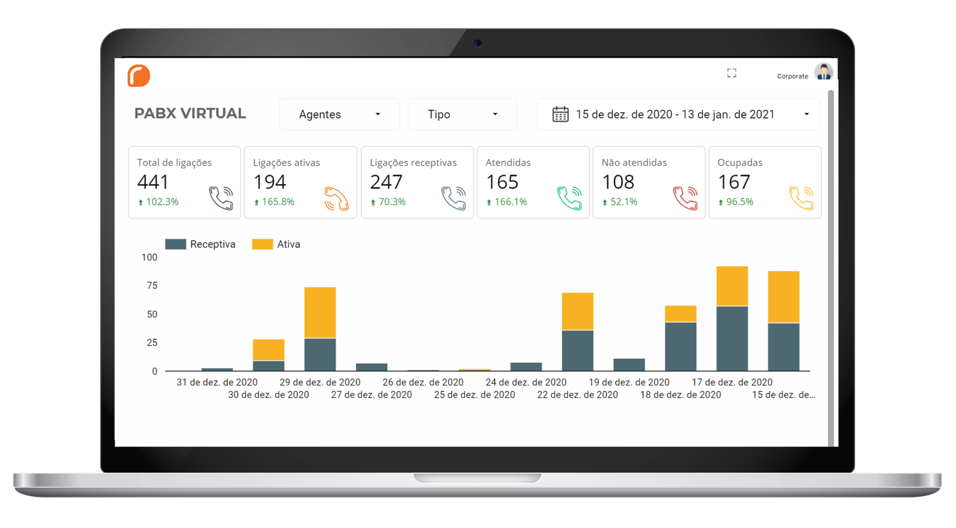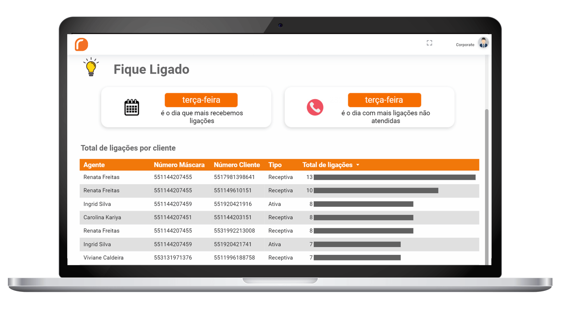 With the digitization of salespeople, it is possible to analyze team productivity indicators to boost sales and service. With the intelligent monitoring service of calls, whatsapp and email you will have insights into consumer behavior and stock trends. Our purpose is to deliver a complete platform for the total management of your business.